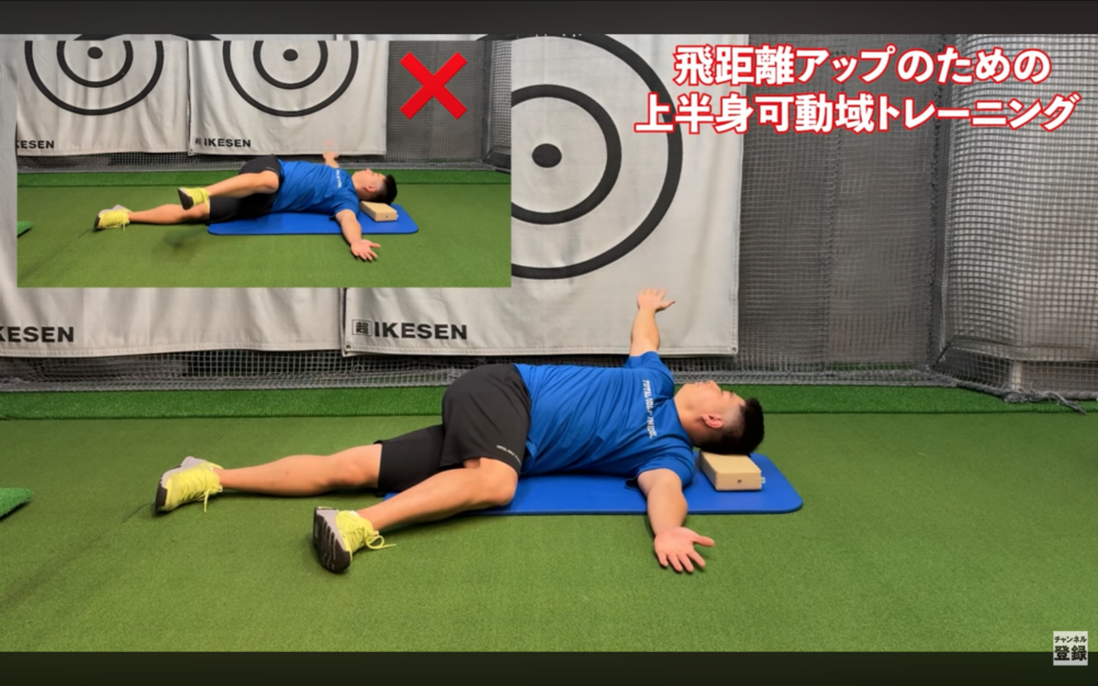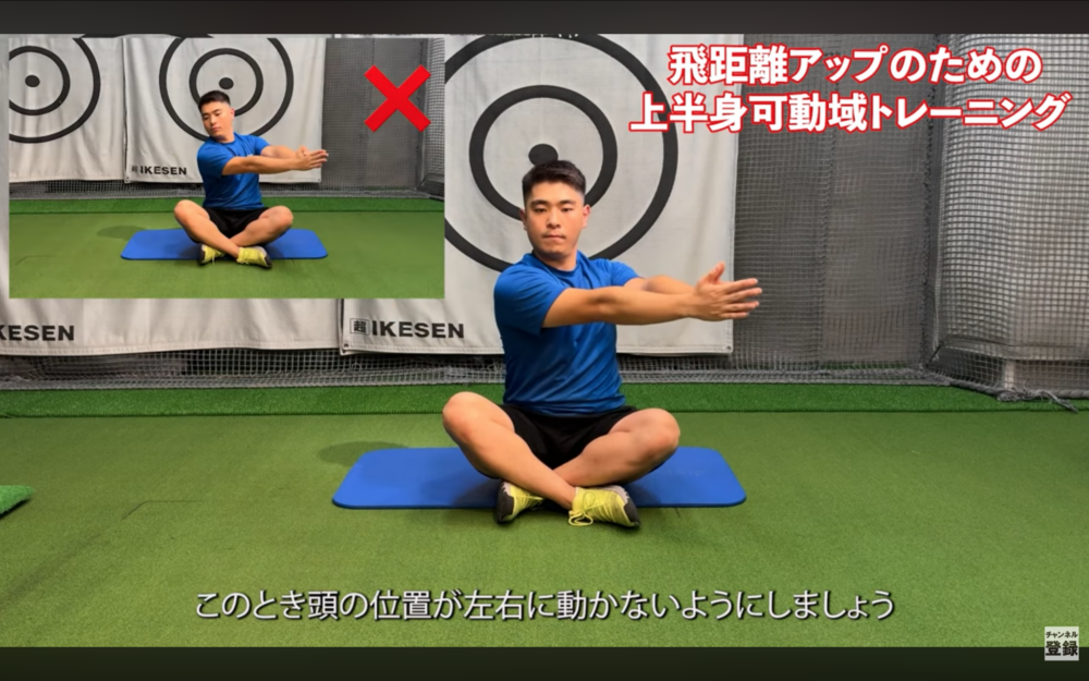 目的(効果):胸椎と肩まわりの回旋を高め、スイング時の“捻転差”をつくる。