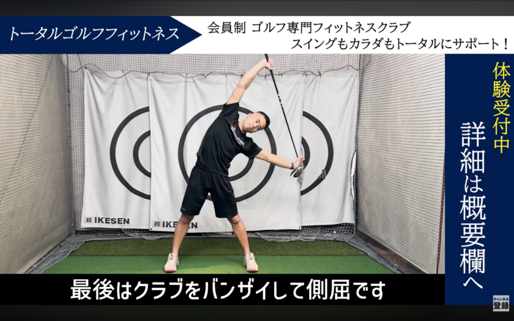 体側が伸びて前傾姿勢をキープしやすくなり、振り抜きがスムーズになる。 - 手順