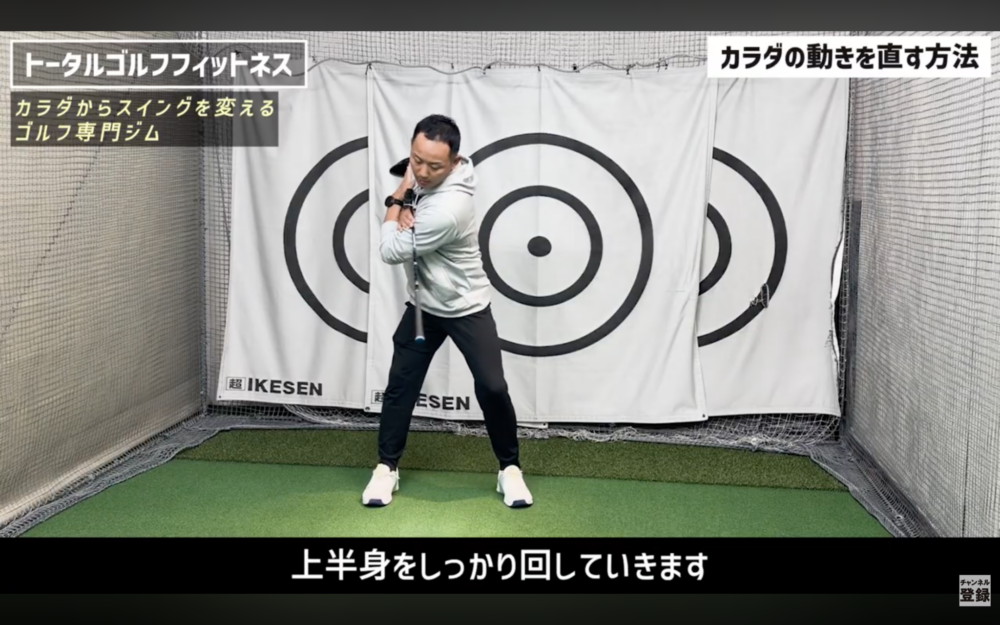 胸が回らないと、手だけで上げやすくなり、切り返しで伸び上がってカット軌道になりやすい。
