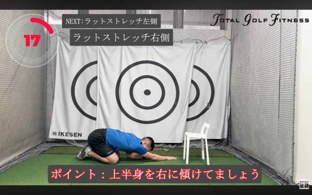 広背筋〜体側の柔軟性UP/肩の可動域UP/トップで詰まる感覚の改善/上体の回旋を出しやすくする