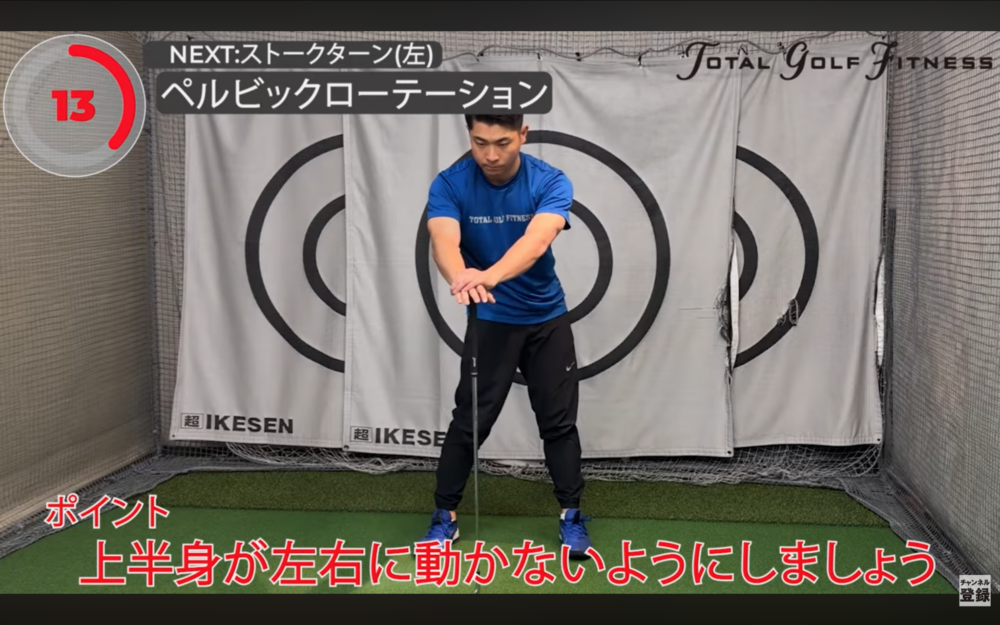 肩が一緒に回らないよう、”上半身が左右に動かないように”意識を集中させましょう。
