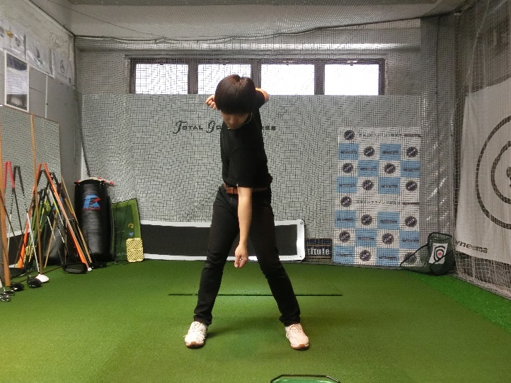 水平回転では、体が起きやすく軸ブレによるミート率の低下や、トップポジションにおいて腰も回りすぎるため、適切な捻転差が得られず飛距離の低下にも影響してきます。